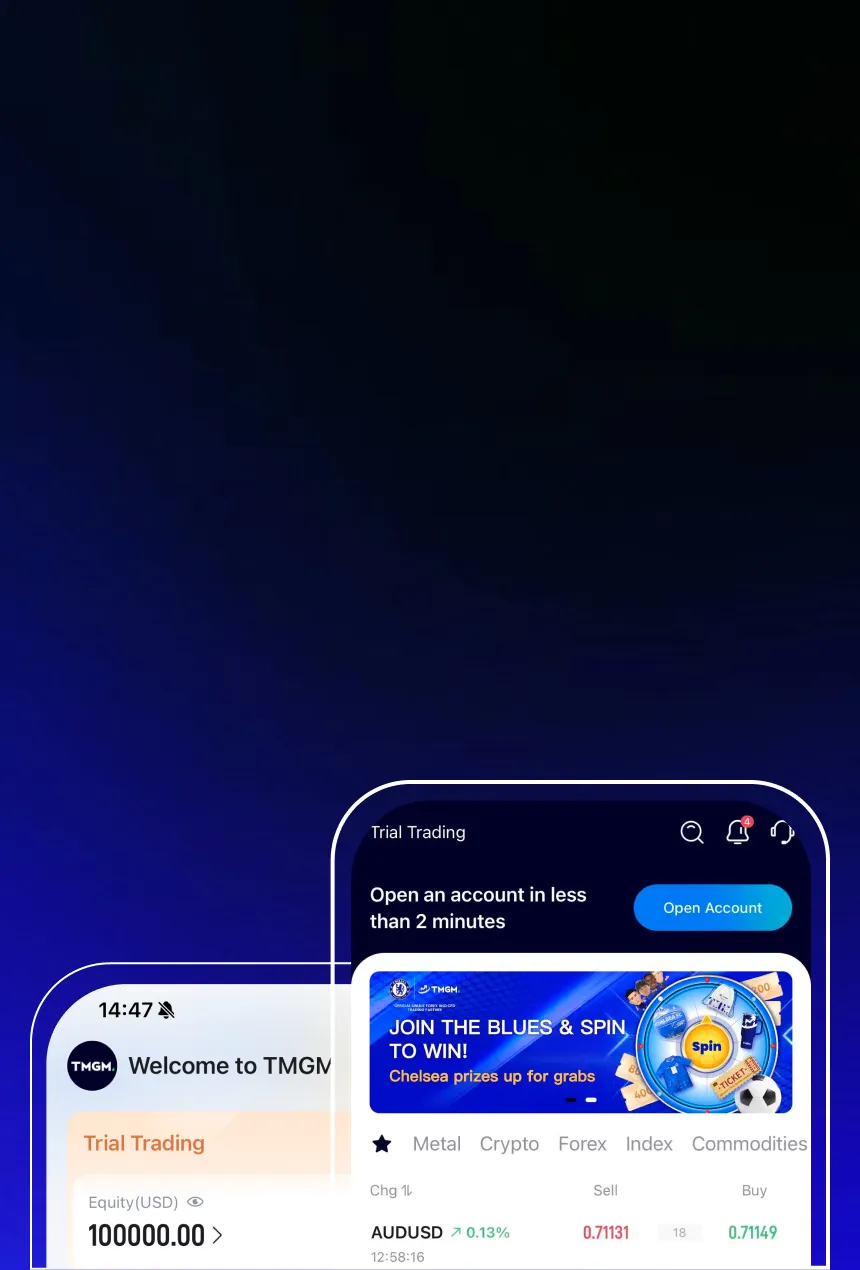 You can trade hundreds of products across multiple asset classes including Forex, Precious Metals, Indices, Cryptocurrencies, Stocks, and more without having to leave the TMGM app.